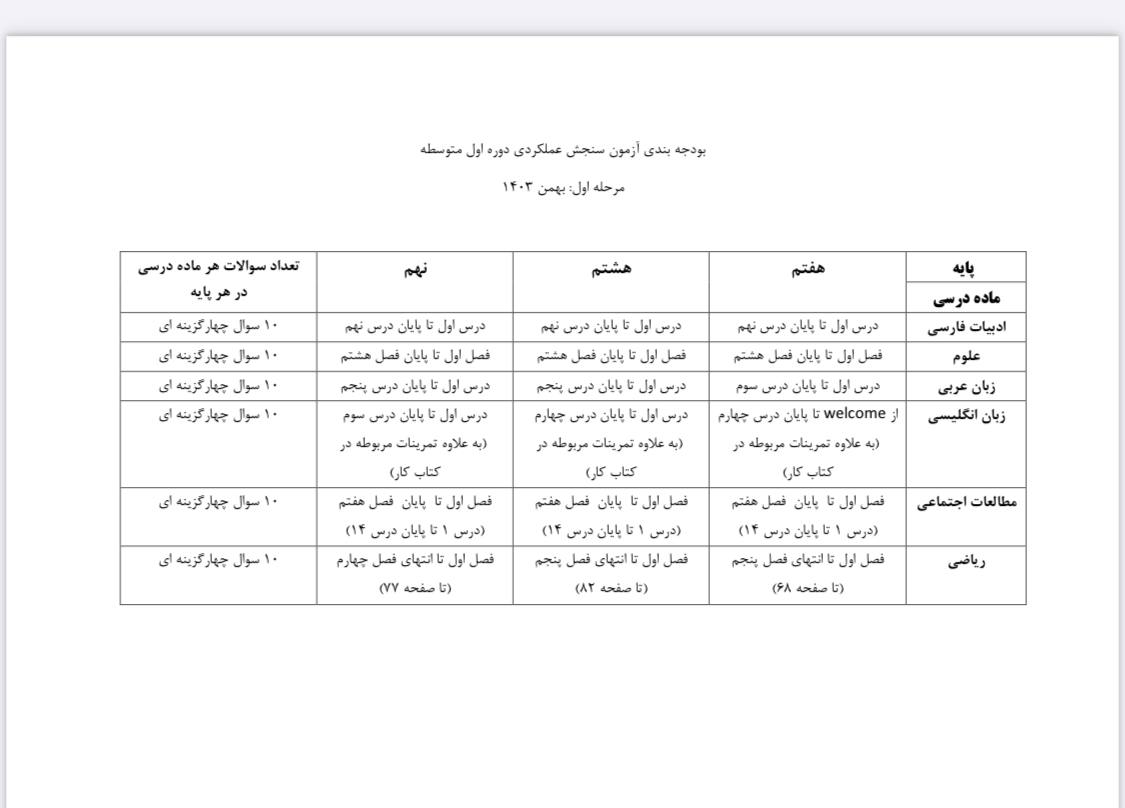 مرحله ی اول آزمون دستاوردهای یادگیری